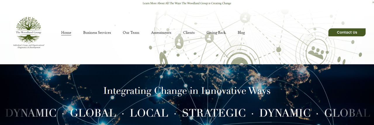 I designed and manage this website for The Woodland Group, a global organizational development firm. I edited all copy for the website, maintain and edit blog posts, and manage social media for this client.